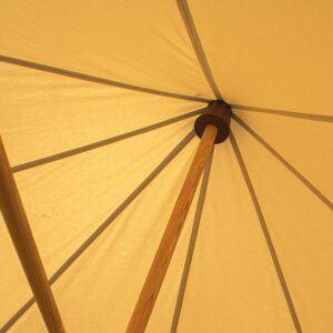 Step into the past with this magnificent single-pole pavilion, featuring a rich red canvas with gold hand-painted designs. A true eye-catcher at any medieval camp or fair!